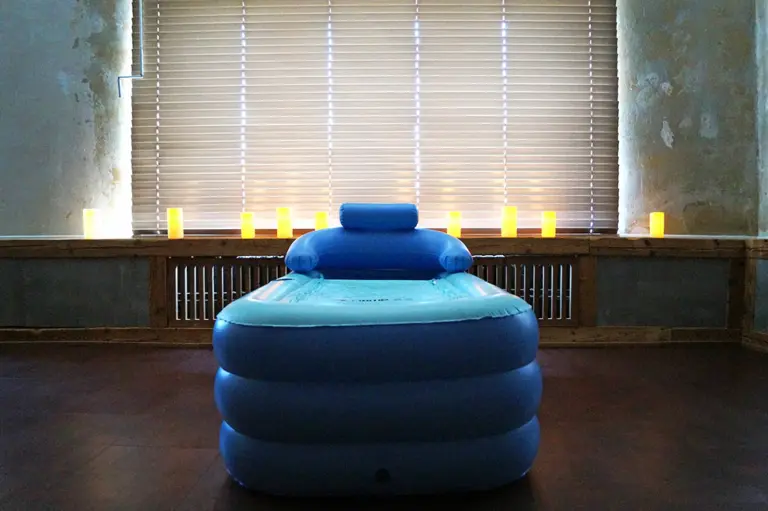 Luftig leicht und dezent quietschig liegst du in der plastikblauen Badewanne bereit. Es ist sehr bequem, wie du dich hier hineinchillen kannst.