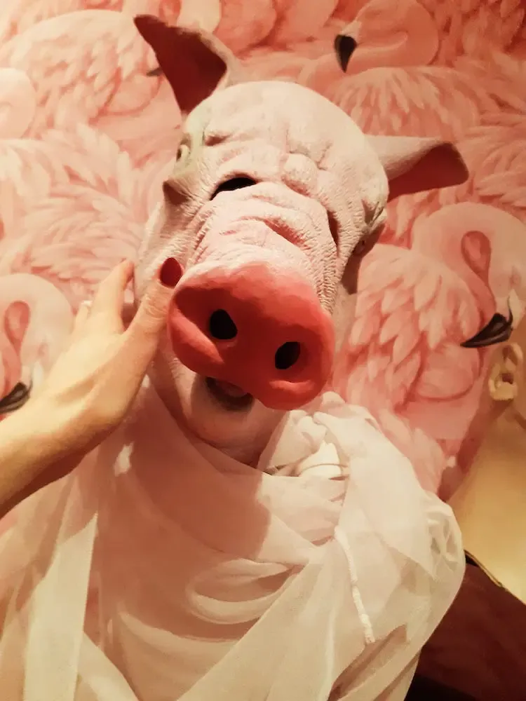Als er wieder nach oben kommt, lasse ich ihn das rosa Tütü anziehen und zwinge ihn dazu, wie eine Ballerina für mich zu tanzen. Er verfehlt die Rolle gründlich. Stattdessen sieht er aus wie ein Ferkel, das in seinem Koben herumhoppelt, also beschließe ich, ihm eine Schweinemaske über den Kopf zu ziehen und ihn zum Grunzen zu bringen. Er macht das erstaunlich gut.