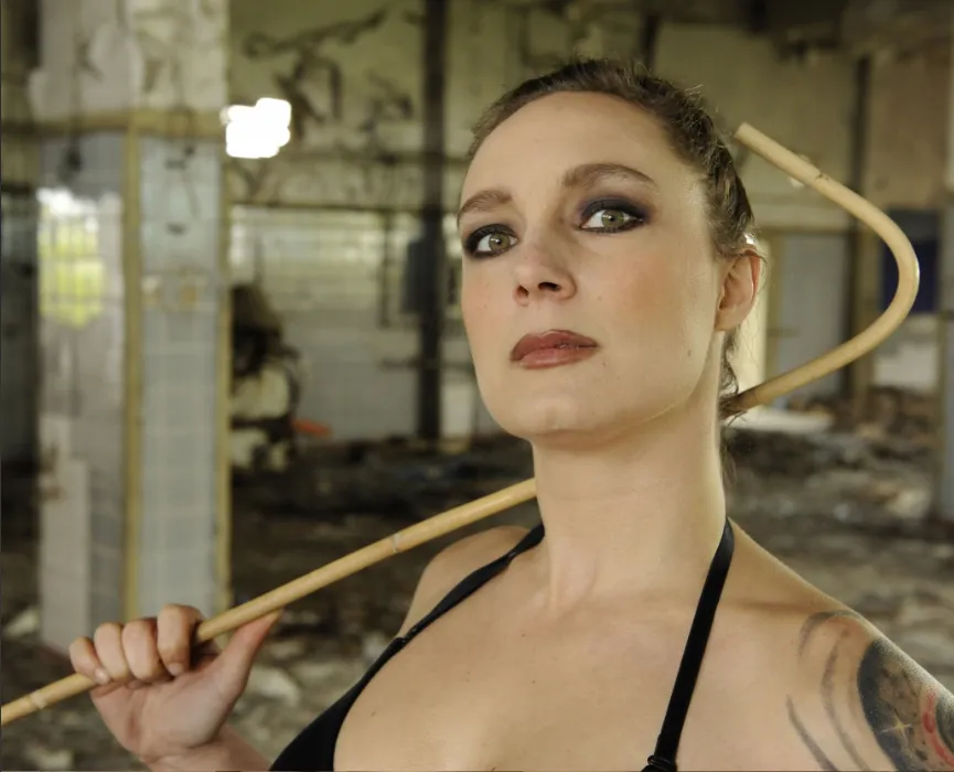 A swoosh and a crack of the whip, once…. twice…. three times – as the Mistress rhythmically practiced her stroke.