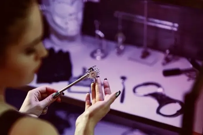 Spitzer Schmerz, dumpfer Schmerz. Nadeln, Schlaginstrumente, Absätze, Hände, Strom, medizinisches Equipment, unbequeme Positionen.