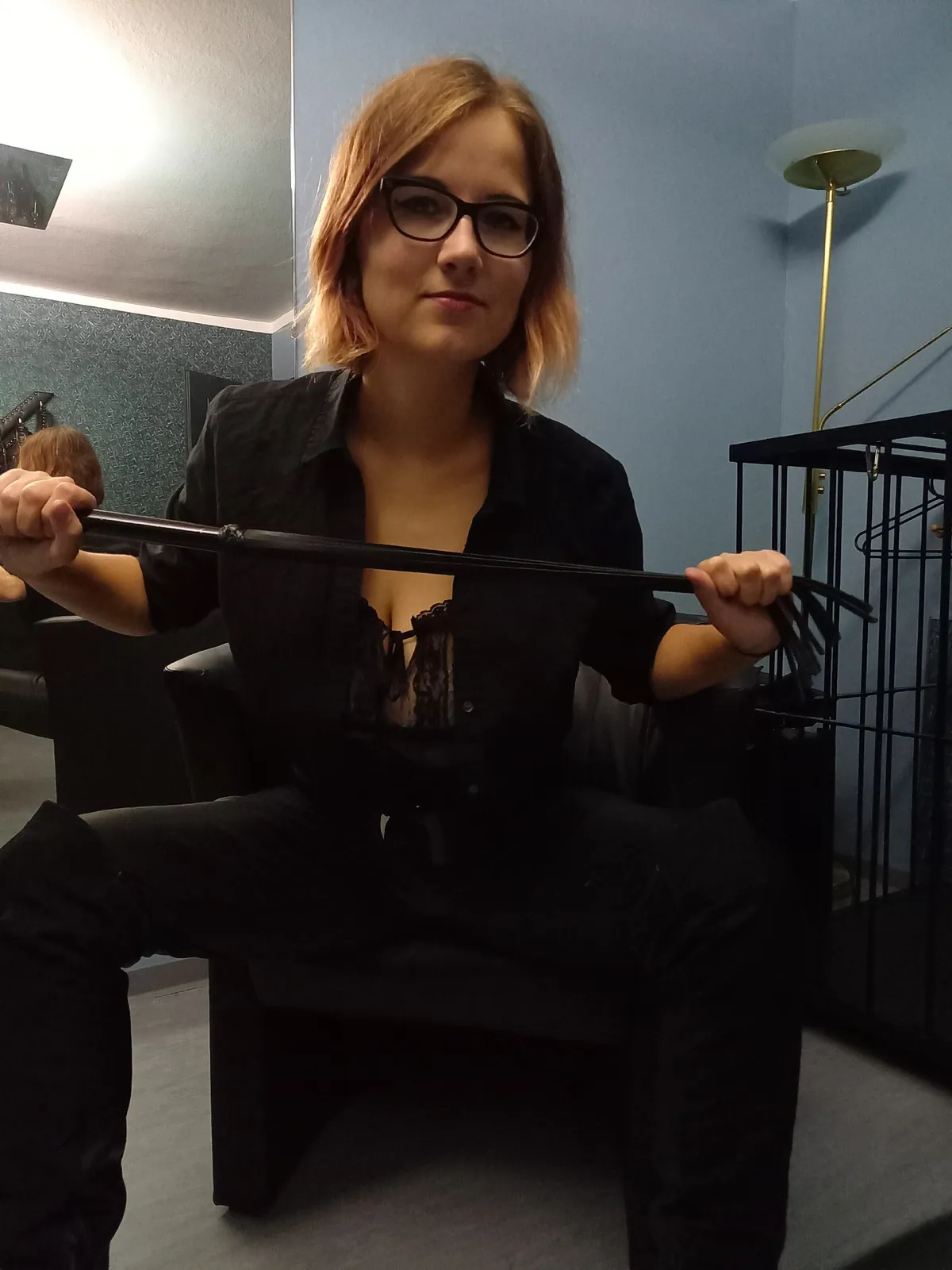 “Oh yeah, we’re all going to use those today,” I say, noticing my anticipation. “And for every minute you were late, you’ll get five strokes with a tool of my choice as punishment.” Which tool I’ll choose. Such a difficult decision. I take the whip from the wall and let it circle slowly in my hand. The guest stands excitedly next to me.