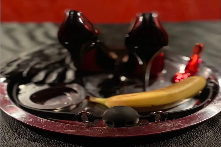 My gloved fingertips graze his skin, a teasing touch, before I guide him further into this moment of surrender. There is rhythm in this, in the way my hands move, in the tempo of my voice. I place them behind and in front of his heart, so that he feels my body, he breathes, and I can feel his heart rate. “Feel me, do you feel me?” “Yes, Mistress.” “Can you feel me inside?” I devein his eyes. “Now you can see me, but you can’t touch me.” I raise him a little so he stands on tiptoe. “I’m playing with your body; I’m playing with your mind. Repeat it, more and more.” As he repeats, I take distance, walking in circles around the scene.